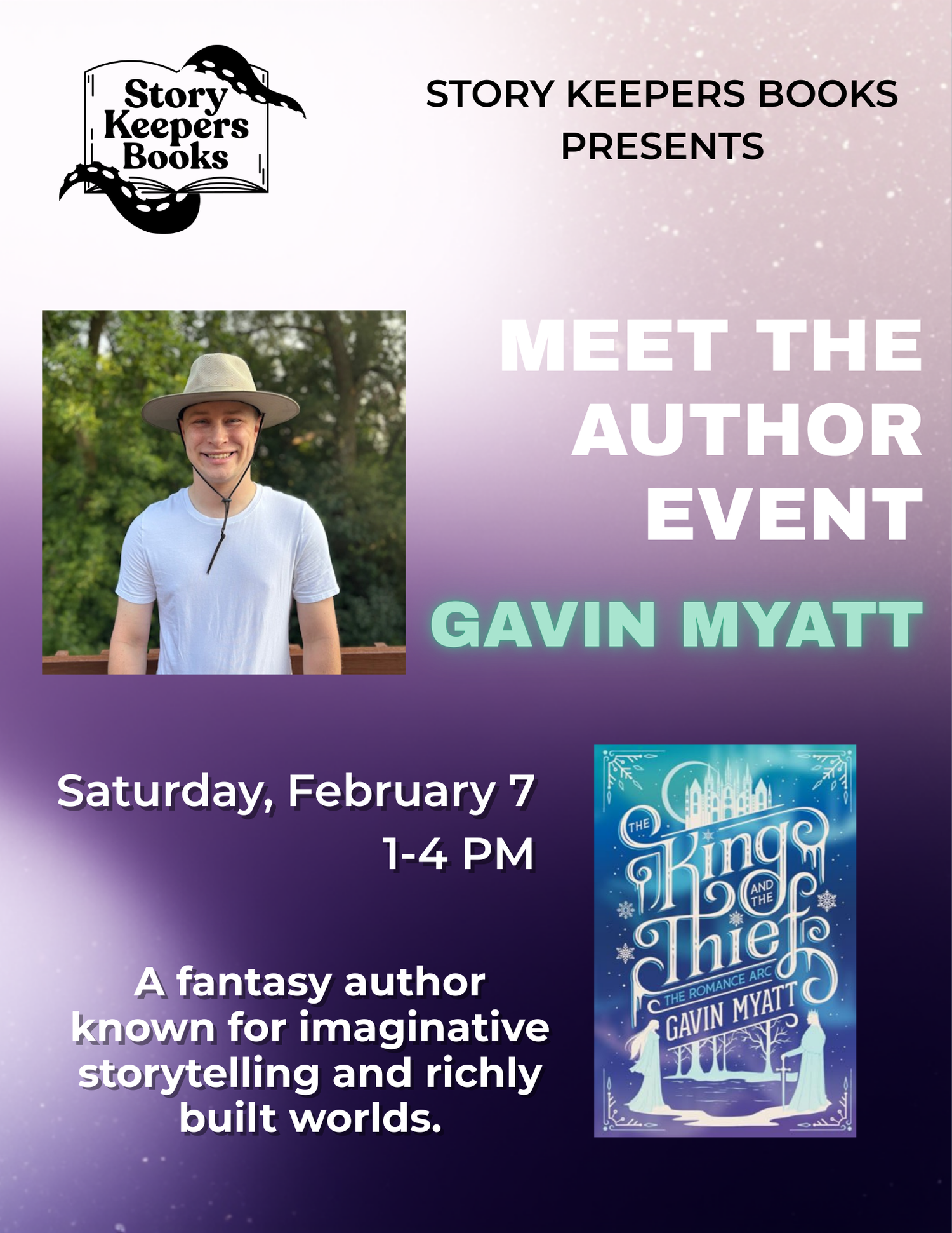 Join us for an author event with Gavin Myatt on Saturday, February 7 from 1–4 PM. Gavin will be featuring his new fantasy novel The King and the Thief, set in the same richly imagined world as The Girl and the Red Dragon, exploring an earlier era of its history. Stop in to meet the author, learn about the world he’s building, and get your books signed during this casual, drop-in event.