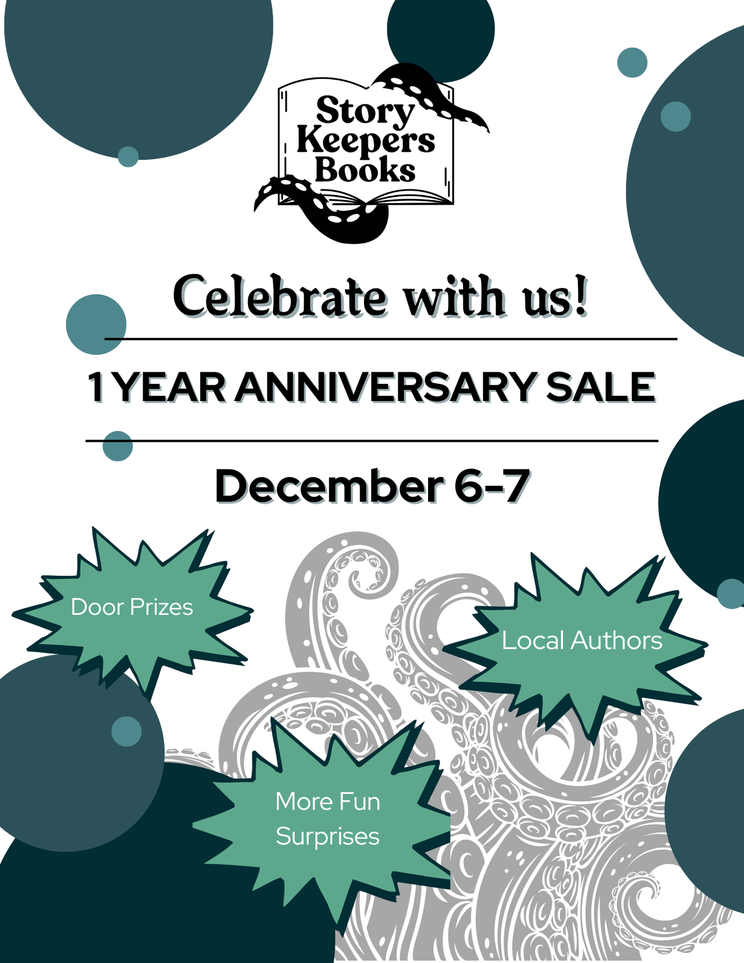 Celebrate one year of Story Keepers Books with us! Our 1-Year Anniversary Sale is a thank-you party for everyone who has helped us grow, with special deals throughout the shop, fun surprises, and plenty of cozy, bookish vibes. Come browse the shelves, pick up gifts for yourself and others, and help us kick off year two of keeping stories in the community.